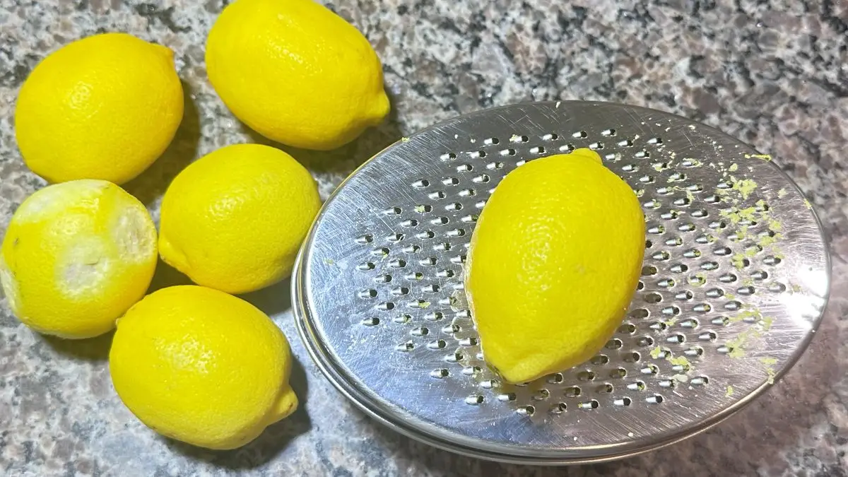This is the step most people reverse, and reversing it costs you effort and rind. Grate all three tablespoons of lemon rind before you cut the lemons in half. Once the lemons are juiced, the flesh collapses, the rind bows inward, and you have almost no working surface left. Grate first, juice second, and you will move through the prep in under 10 minutes.